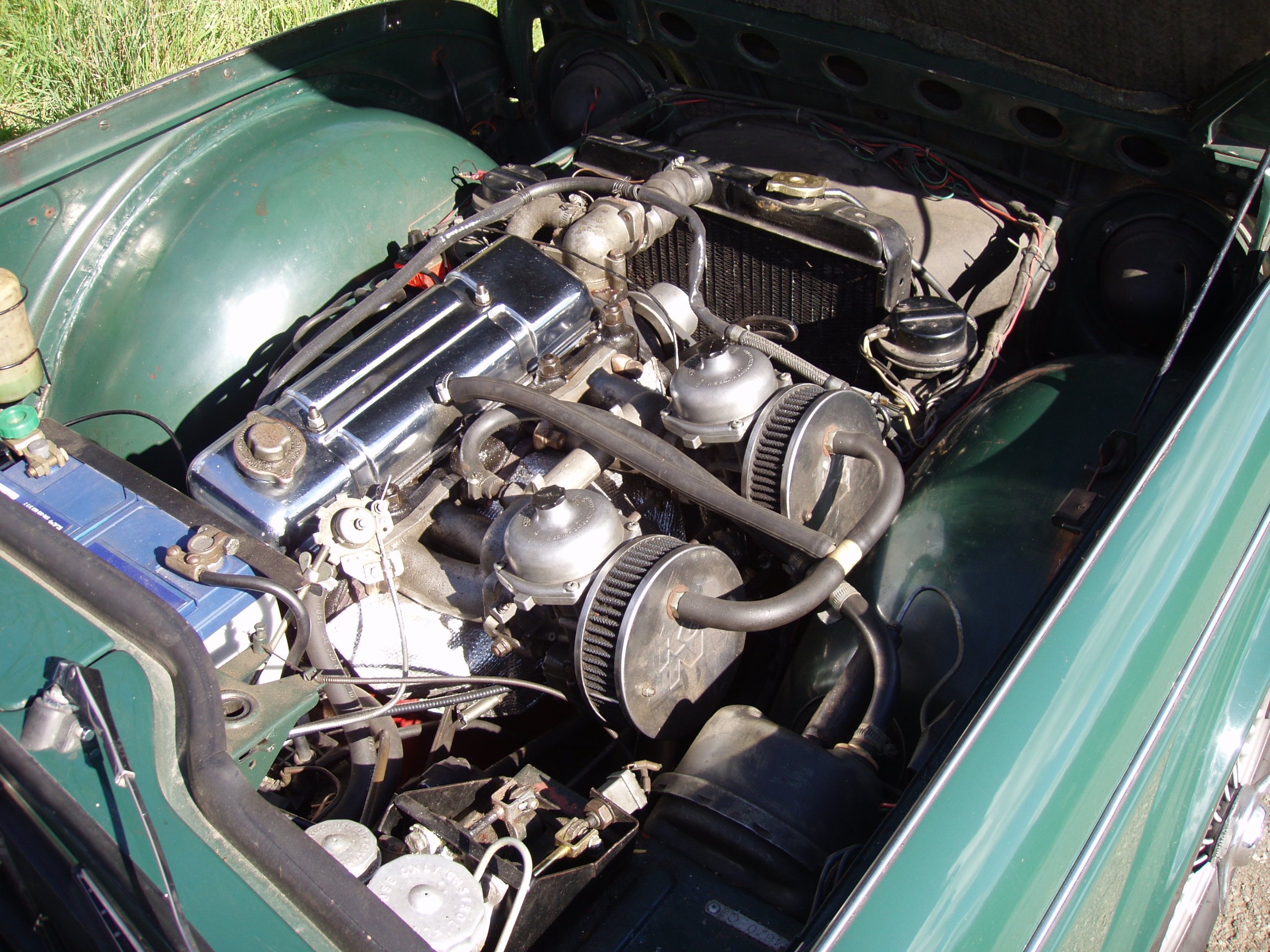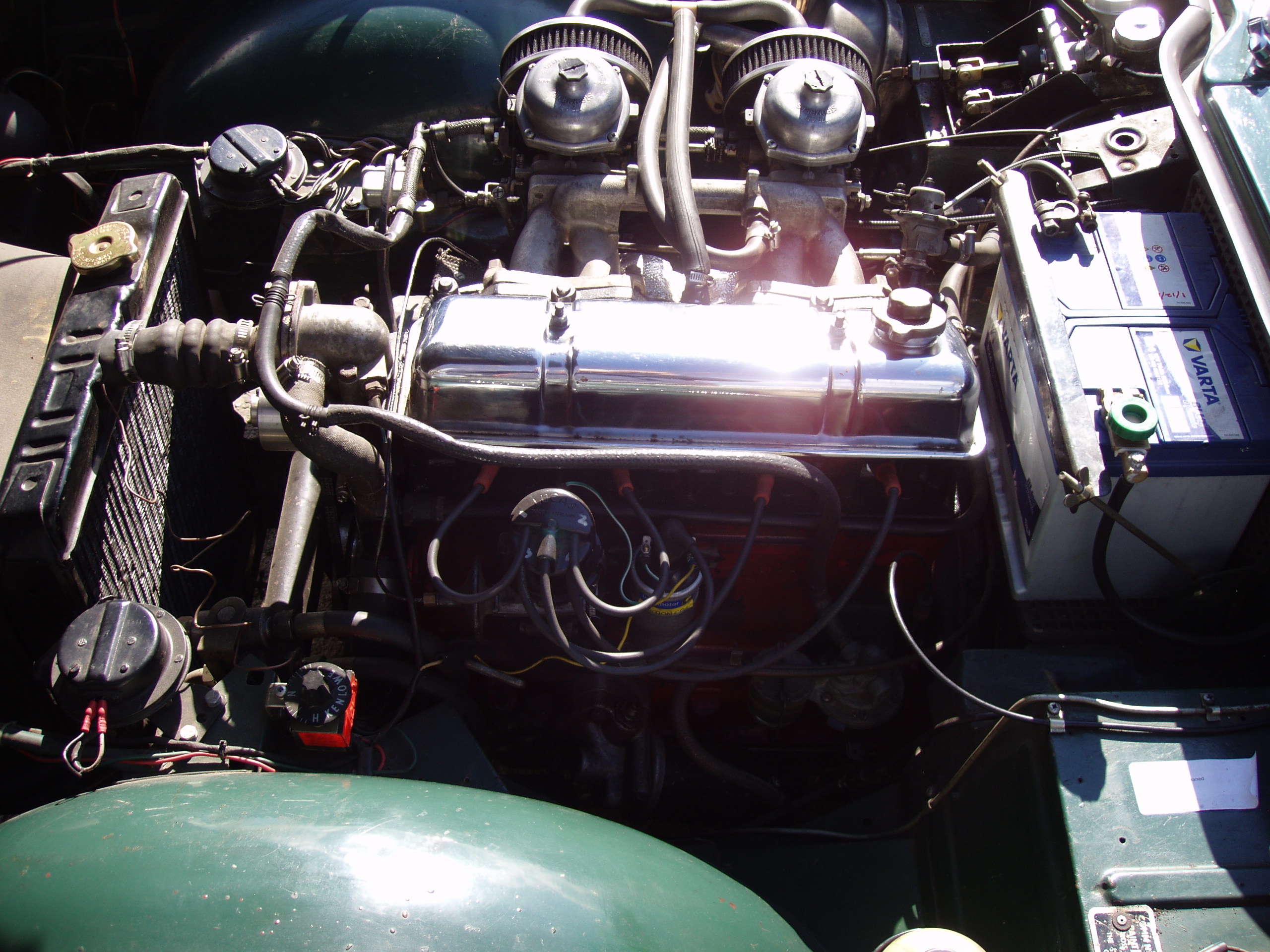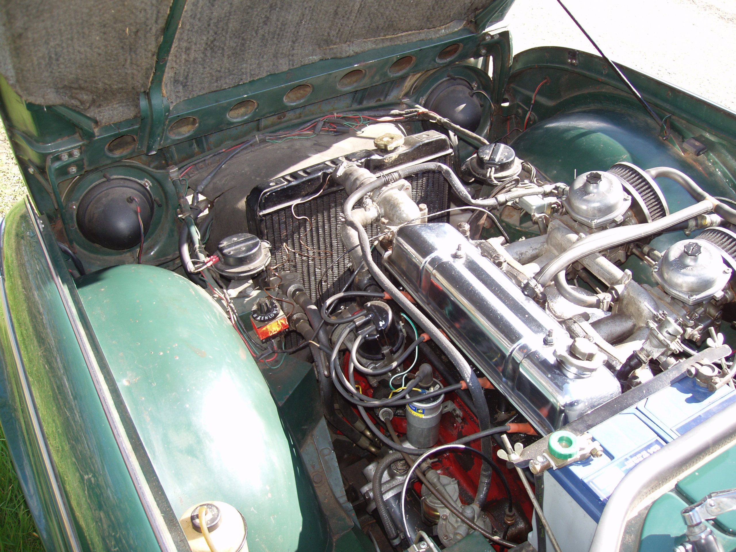 An older restoration, sound bodywork with good paint, full weather equipment, super driving car, over-drive, wire wheels, nicely sorted.